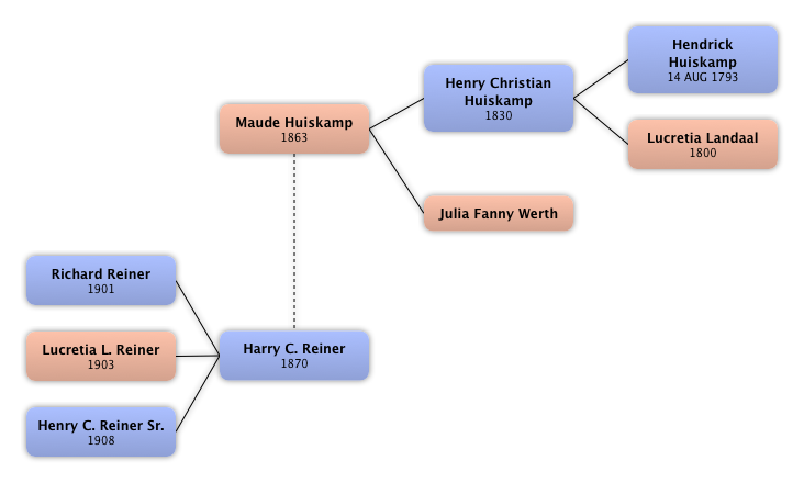 Rinier Huiskamp White | 1st cousin twice removed (m) | 1911 | | 1935 | |