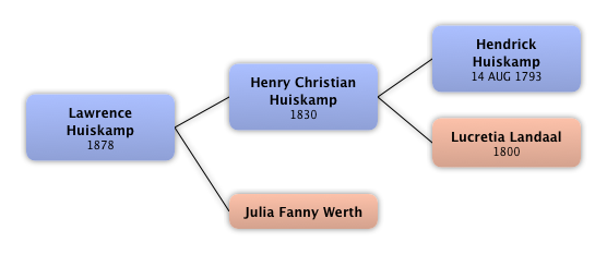 Hendrick Huiskamp | Grandfather | 14 AUG 1793 | Eerbeek, Holland | 1843 | Amsterdam, Holland |